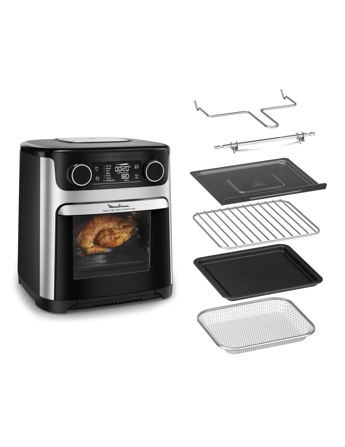 Moulinex Easy Fry Multifunction AL556DF0. Type de produit: Friteuse d’air chaud, Capacité: 15 L, Capacité de la friteuse: 1 kg. Type de construction: Unique, Couleur du produit: Noir, Acier inoxydable, Type de commande: Boutons, Rotatif. Type d'écran: LCD. Type de prise: Type C