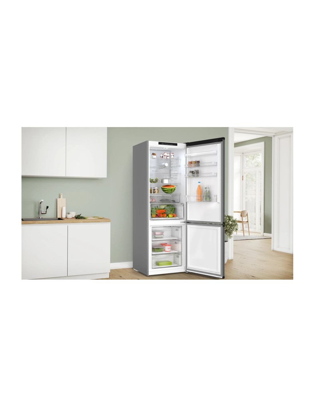Bosch Serie 4 KGN49OCAF. Capacité nette totale: 311 L. Emplacement charnière de porte: Droite. Classe climatique: ST-T, Niveau sonore: 29 dB. Capacité nette du réfrigérateur: 311 L, No Frost (réfrigérateur), Lumière intérieure du réfrigérateur, Nombre de clayettes/bacs du réfrigérateur: 5. Capacité net du congélateur: 129 L, Capacité de congélation: 11,5 kg/24h, No Frost (freezer). Nouvelle zone compartiment. Classe d'efficacité énergétique: A, Consommation annuelle d'énergie: 122 kWh. Couleur du produit: Anthracite