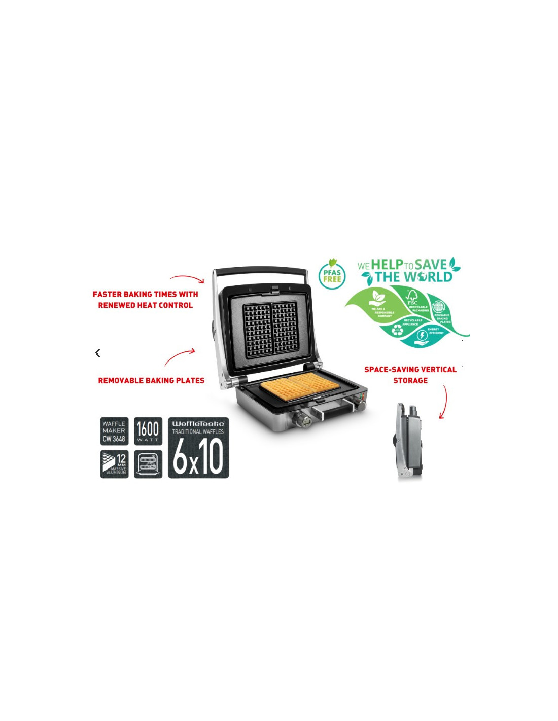 100% durable grâce à réutilisation des plaques de la génération précédente du combi-gaufrier + réutilisation des moules des plaques existantes des versions précédentes du CW (les plaques des versions précédentes peuvent être utilisées dans cet appareil)