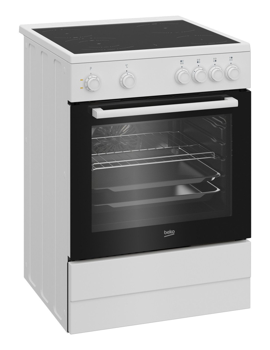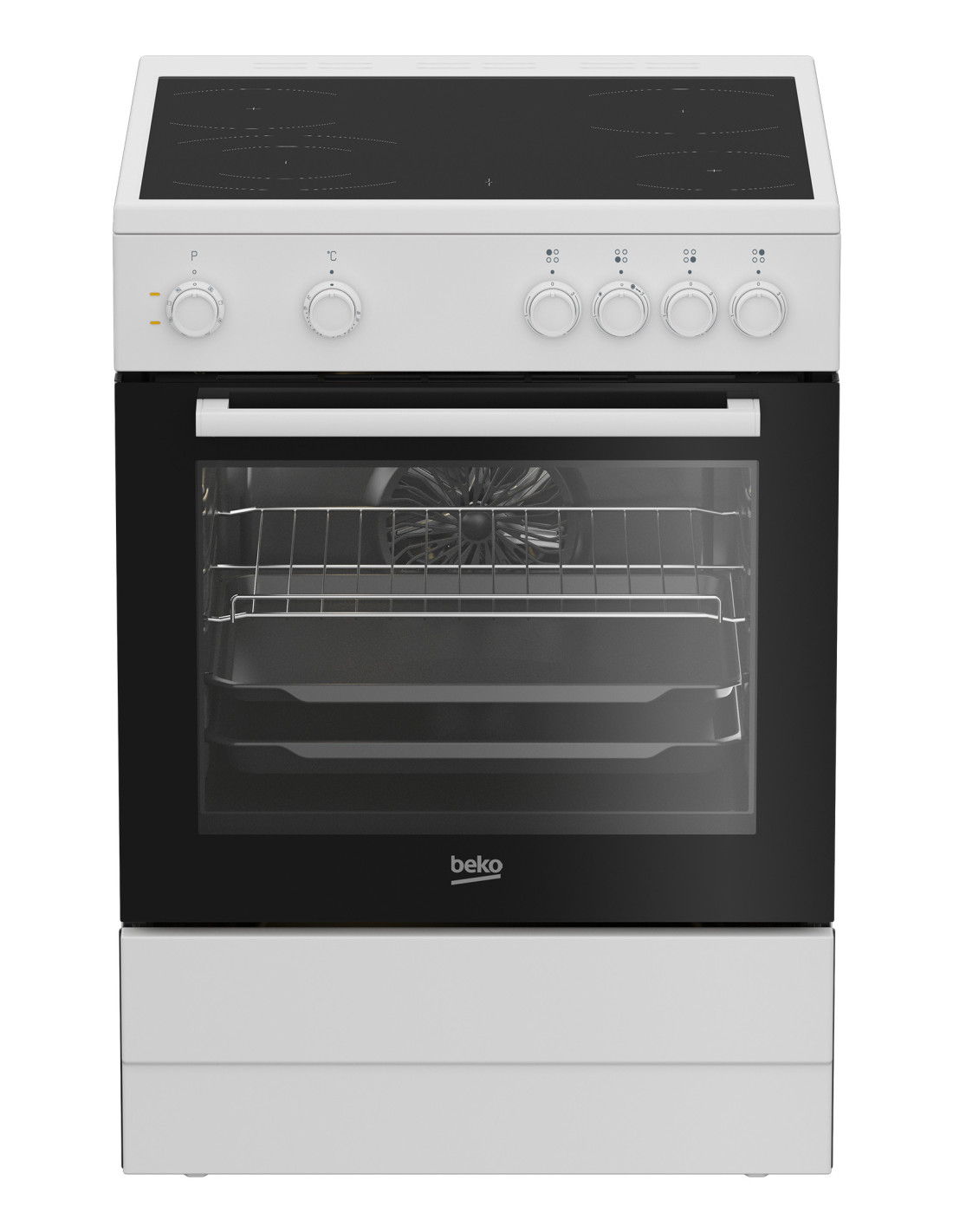 Beko FBM6701W. Type de produit: Cuisinière, Couleur du produit: Noir, Blanc, Type de commande: Rotatif. Type de plaque: Céramique, Nombre de brûleurs: 4 zone(s), Nombre de zone de cuisine électrique: 4 zone(s). Taille du four: Moyenne, Source d'alimentation du four: Electrique, Capacité nette du four: 66 L. Classe d'efficacité énergétique: A, Consommation d'énergie (conventionnelle): 0,99 kWh, Consommation d'énergie (convection forcée): 0,79 kWh. Largeur: 600 mm, Profondeur: 600 mm, Hauteur: 850 mm