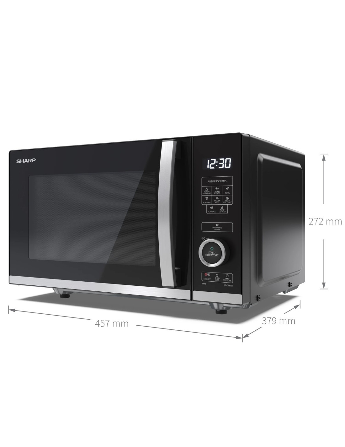 Sharp YC-QS204AE-B micro-onde Noir, Acier inoxydable Micro-onde simple Comptoir 20 L 800 W