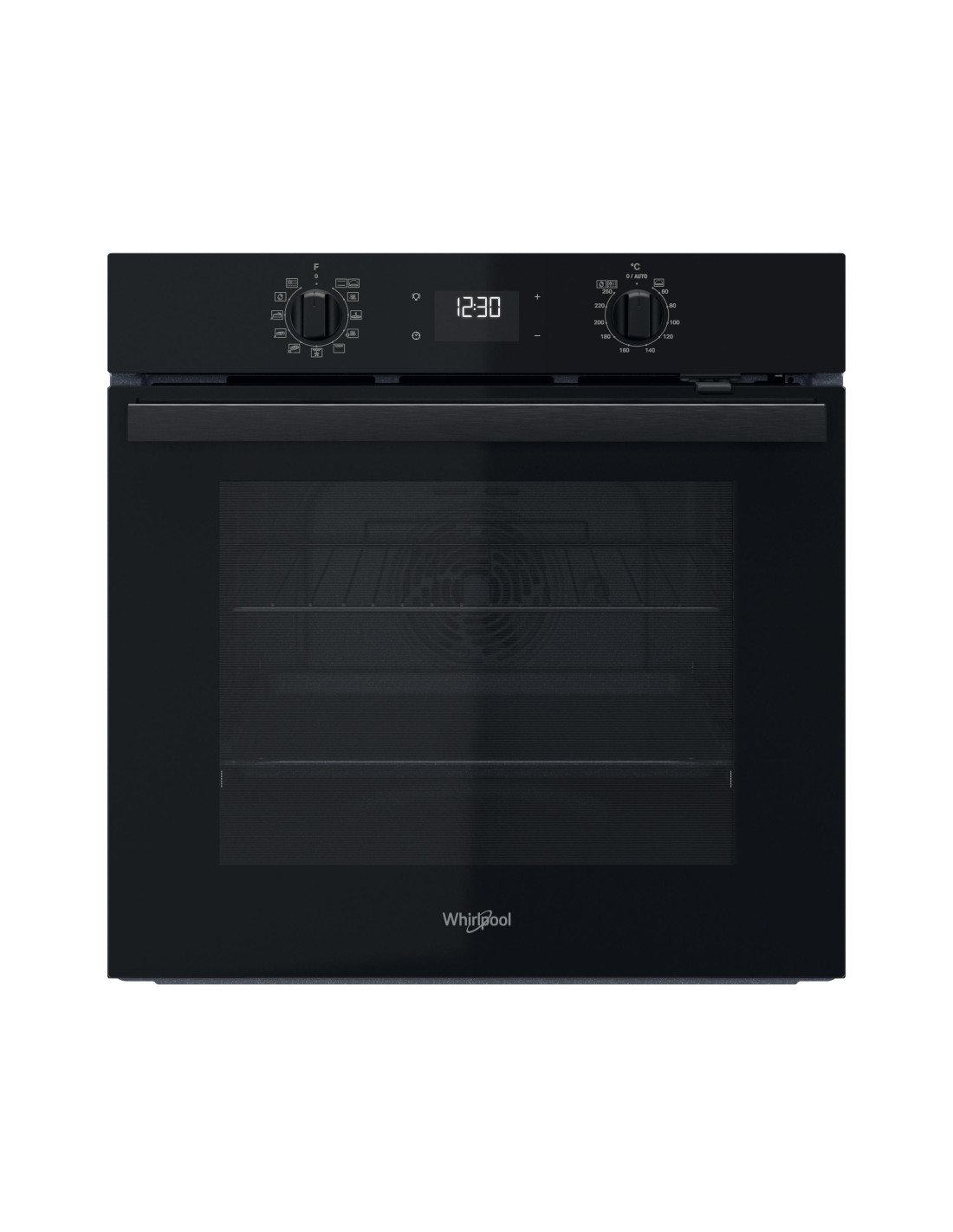 Whirlpool OMR58RR1B. Grootte oven: Middelmaat, Soort oven: Elektrische oven, Totale binnen capaciteit (ovens): 71 l. Apparaatplaatsing: Ingebouwd, Kleur van het product: Zwart, Soort bediening: Draaiknop, Touch. Soort klok: Elektronisch, Type timer: Digitaal. Energie-efficiëntieklasse: A+, Energieverbruik (conventioneel): 0,89 kWu, Energieverbruik (geforceerde convectie): 0,69 kWu. Installatie compartiment breedte: 56,8 cm, Installatie compartiment diepte: 56 cm, Installatie compartiment hoogte: 58,5 cm