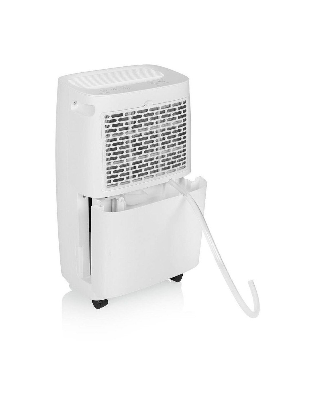 Last van vochtplekken of klamme lucht in huis? Met de Tristar DH-5419 luchtontvochtiger los je beide problemen eenvoudig op. Dankzij de capaciteit van 10 liter per dag is de luchtontvochtiger geschikt voor ruimtes tot 20 m2. Inclusief koolstoffilter en zwenkwielen zodat je hem makkelijk kan verplaatsen. Luchtontvochtiger met hygrostaat Een ontvochtiger met hygrostaat is geschikt voor automatische luchtontvochtiging. De hygrostaat kan worden ingesteld op de gewenste luchtvochtigheid. De ontvochtiger start de werking en stopt pas als de ingestelde luchtvochtigheid bereikt is. Daarnaast slaat de ontvochtiger automatisch af als het reservoir vol is zodat deze nooit kan overstromen. Gebruik een luchtontvochtiger als je last hebt van een klamme en muffe lucht in huis of om overtollig vocht aan de lucht te onttrekken na een overstroming. Eenvoudig te verplaatsen Door het geïntegreerde handvat is de Tristar luchtontvochtiger makkelijk op te tillen en te verplaatsen. Door de zwenkwielen is de ontvochtiger ook eenvoudig te verrijden. Zo kan je ruimte voor ruimte ontvochtigen of gebruik hem in een wasruimte tijdens het drogen van de was. Verlicht gezondheidsklachten Een luchtontvochtiger kan een uitkomst zijn voor mensen met astma of luchtwegproblemen. Doordat de lucht droger is raken holtes minder snel verstopt en kan een verkoudheid sneller over zijn. In combinatie met het bijgeleverde koolstoffilter worden ook nare en muffe geurtjes uit de lucht gefilterd. Gebruik samen met een airco Om de airco effectiever te gebruiken is het handig om de ruimte te ontdoen van overtollig vocht in de lucht met de Tristar luchtontvochtiger. Droge lucht is makkelijker te koelen voor de airco waardoor je niet alleen sneller je kamer afkoelt, maar ook energiebesparend bezig bent. Wat vind je in de doos: Tristar luchtontvochtiger, handleiding Redenen om voor de Tristar Luchtontvochtiger te kiezen: Geen last meer van vochtplekken of klamme lucht dankzij de luchtontvochtiger met hygrostaat Opvangcontainer van 2,5 liter en capaciteit van 10 liter per dag Met geïntegreerd handvat en zwenkwielen zodat hij makkelijk verplaatsbaar is Kan zorgen voor verlichting bij allergieën en luchtwegproblemen Geschikt voor ruimtes tot 45 m2; ook op de boot, caravan of in de kelder
