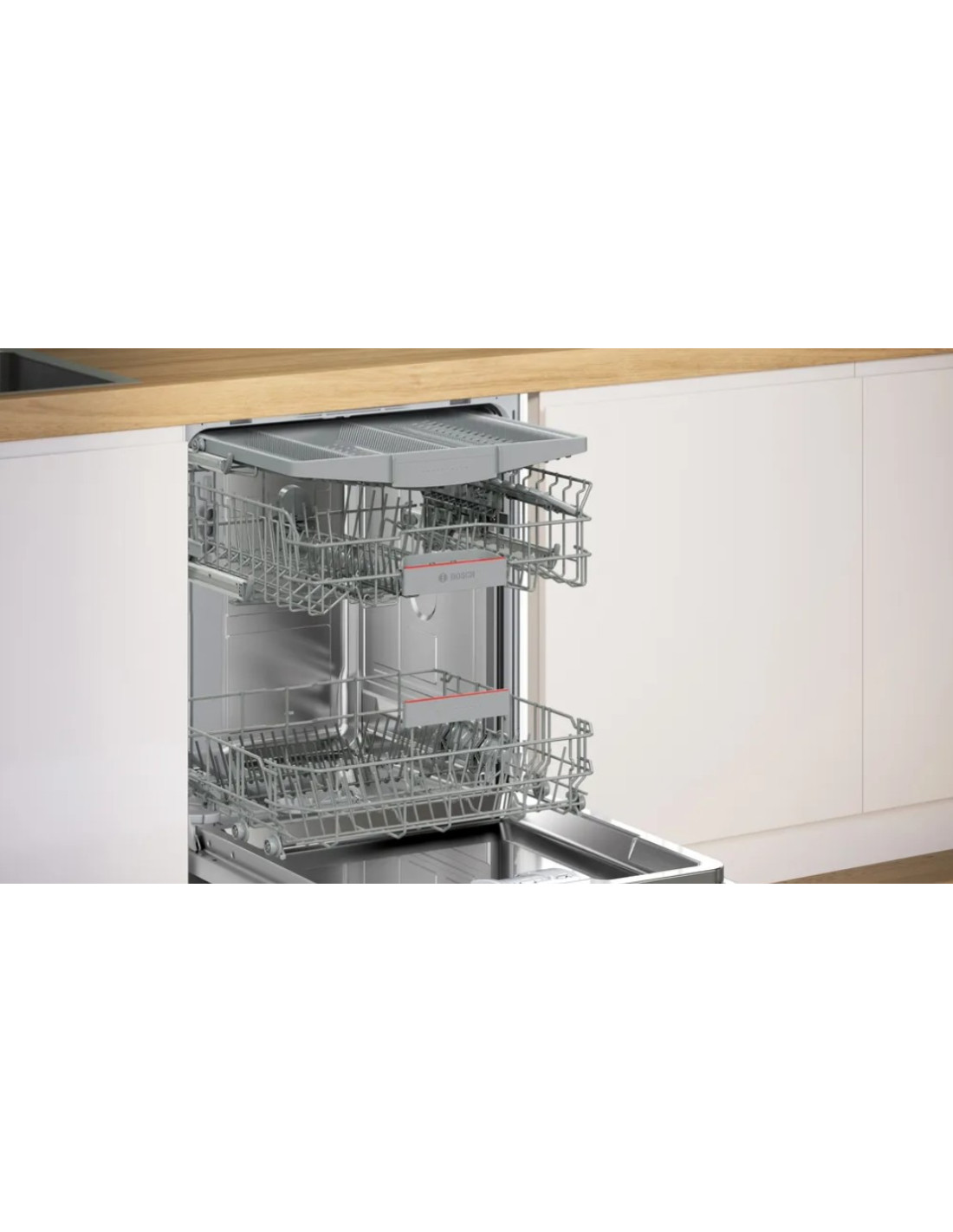 Bosch SMV4EMX24E. Apparaatplaatsing: Volledig ingebouwd, Productafmeting: Volledige grootte (60 cm), Kleur bedieningspaneel: Grijs. Aantal couverts: 14 couverts, Geluidsemissieklasse: B, Geluidsniveau: 42 dB. Voetenverstelling: 6 cm, Bedieningsapps ondersteund: Bosch Home Connect. Energie-efficiëntieklasse: B, Waterconsumptie per cyclus: 9 l, Energieverbruik per 100 cycli: 65 kWu. Breedte: 598 mm, Diepte: 550 mm, Hoogte: 815 mm