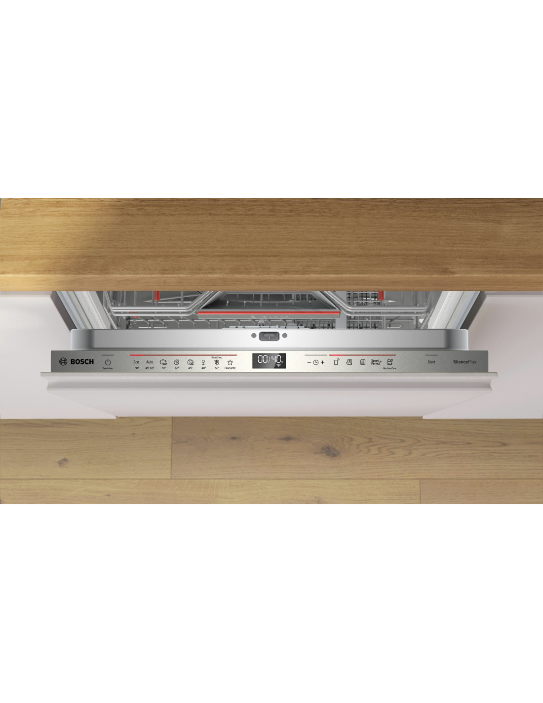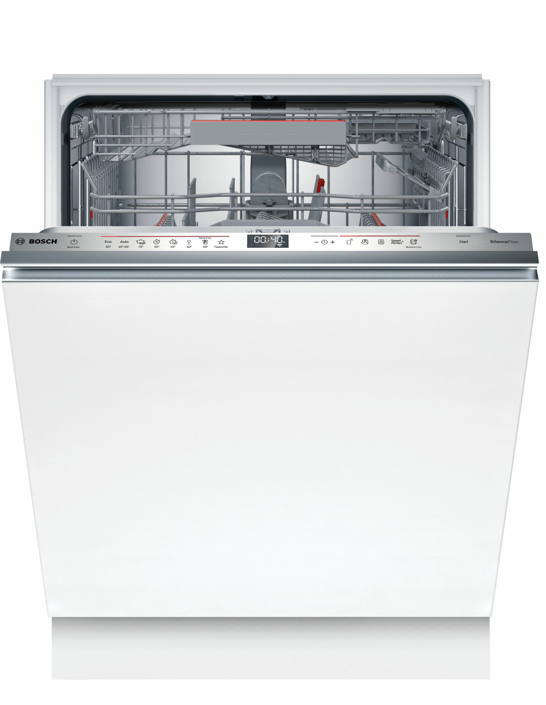 Bosch Serie 6 SMV6EDX00E. Apparaatplaatsing: Volledig ingebouwd, Productafmeting: Volledige grootte (60 cm), Kleur bedieningspaneel: Roestvrijstaal. Aantal couverts: 13 couverts, Geluidsemissieklasse: B, Geluidsniveau: 42 dB. Voetenverstelling: 6 cm, Bedieningsapps ondersteund: Bosch Home Connect. Energie-efficiëntieklasse: B, Waterconsumptie per cyclus: 9 l, Energieverbruik per 100 cycli: 64 kWu. Breedte: 598 mm, Diepte: 550 mm, Hoogte: 815 mm