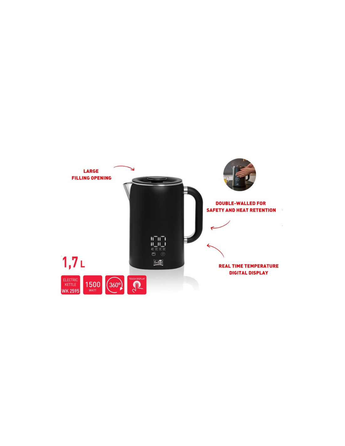 Ervaar de ultieme combinatie van stijl en functionaliteit met deze geavanceerde waterkoker. Geschikt voor iedere moderne keuken. Deze waterkoker biedt een precieze temperatuurregeling, een helder digitaal touch display en een warmhoudfunctie. Of je nu houdt van thee, koffie of een instant soep, deze waterkoker staat altijd voor u klaar.