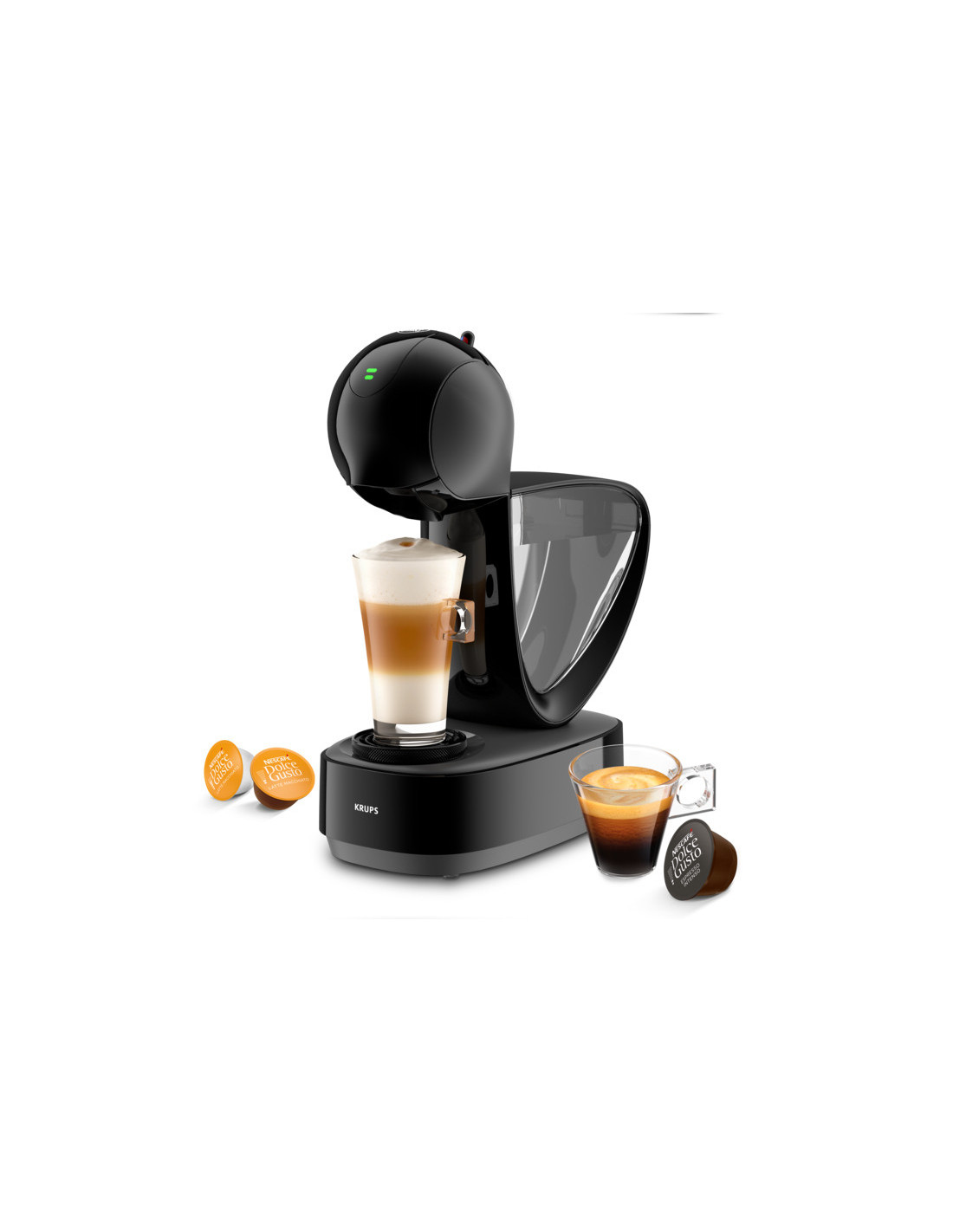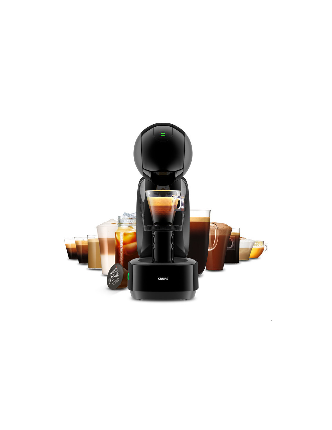Il suffit d'insérer la capsule NESCAFÉ Dolce Gusto de votre choix, de personnaliser votre boisson en tournant l'anneau de contrôle et d'appuyer sur le bouton de démarrage : votre cafetière s'arrêtera automatiquement au bon moment pour préparer une boisson parfaite